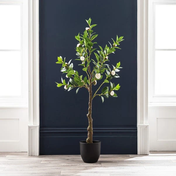 Featuring delicate and detailed cream flowers, this beautiful camellia tree set in a stylish pot is ideal for display in a planter for a more unique and personalised look. The low maintenance piece will bring the outside in, adding a fabulous look to any room of the house.