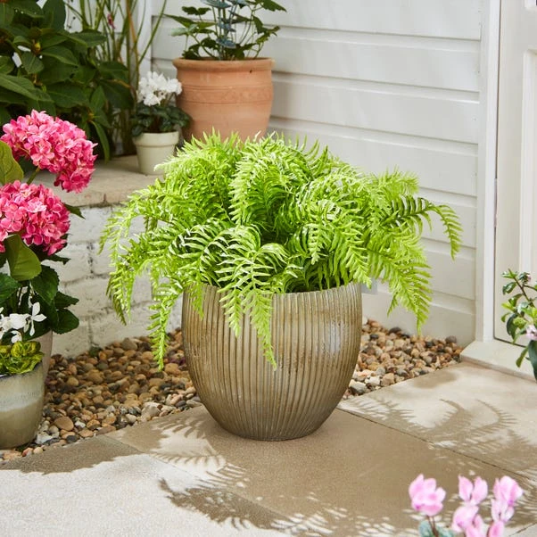 Bring lasting greenery to your home with this stylish artificial fern, perfect for both indoor and outdoor spaces. Nestled in a sleek ribbed plant pot, it adds a contemporary touch to any setting without the need for watering or upkeep. Designed for low-maintenance décor, it’s ideal for busy households or those looking to add a touch of nature with zero hassle. The realistic foliage brings a fresh, vibrant feel to patios, balconies, or indoor corners. Whether placed alone or as part of a larger arrangement, it’s a fuss-free way to refresh your space.