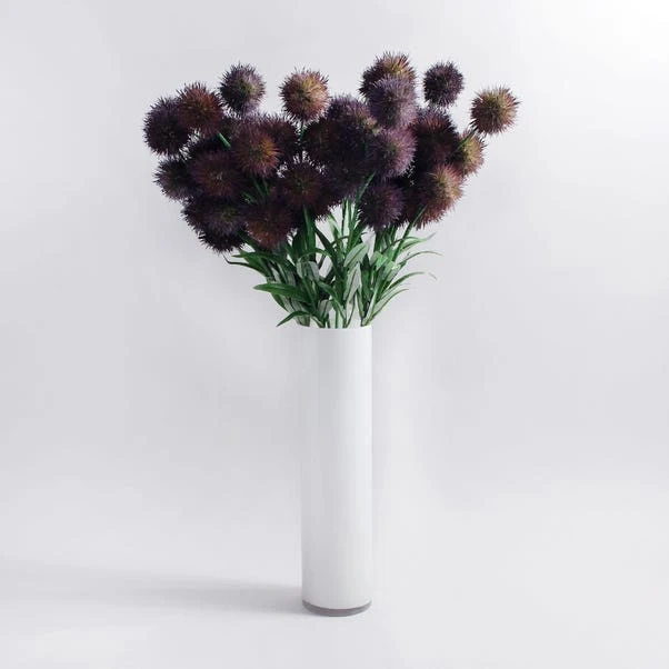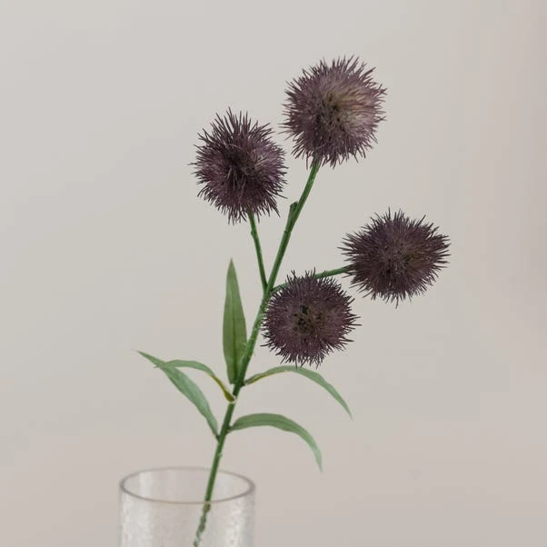 Designed with dark lavender thistle heads, this artificial flower features five thistle heads and requires no maintenance.