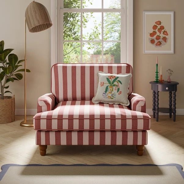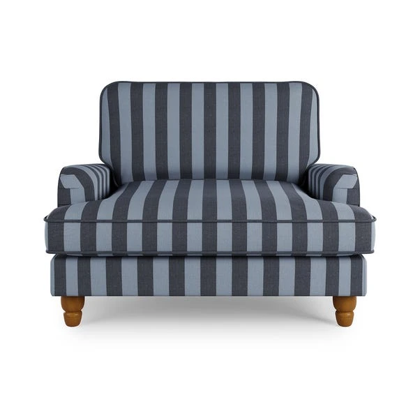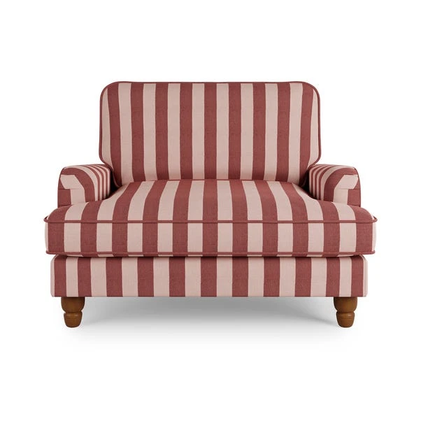 Looking for a snuggle chair that adds a pop of personality to your space? Look no further than this snuggle chair. With its 1-seat design, fixed back, square arms, and stylish cotton blend fabric, it’s a statement piece that’s as comfortable as it is eye-catching. The two-tone stripe pattern adds a touch of texture and charm, while the foam and fibre-filled cushioning provide a cosy seat you’ll love sinking into.