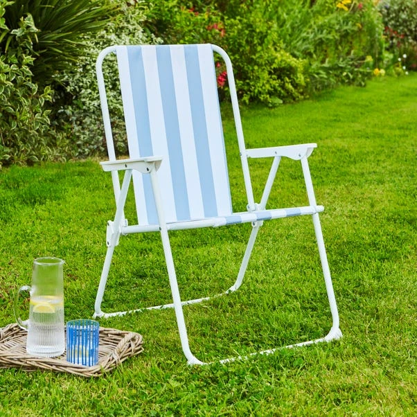 Add a pop of colour to your outdoor adventures with this vibrant blue and white folding chair. Perfect for the beach, picnics, or sunny days in the garden, it brings comfort and style wherever you go. The colourful blue stripe design adds a cheerful touch to any setting. Plus, its foldable design makes it easy to store when you’re done relaxing. Whether you’re soaking up the sun or enjoying a leisurely lunch outdoors, this chair is your ideal companion. Compact, stylish, and practical – it’s everything you need for a perfect day outside.