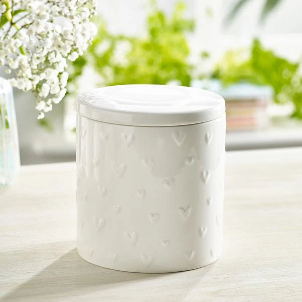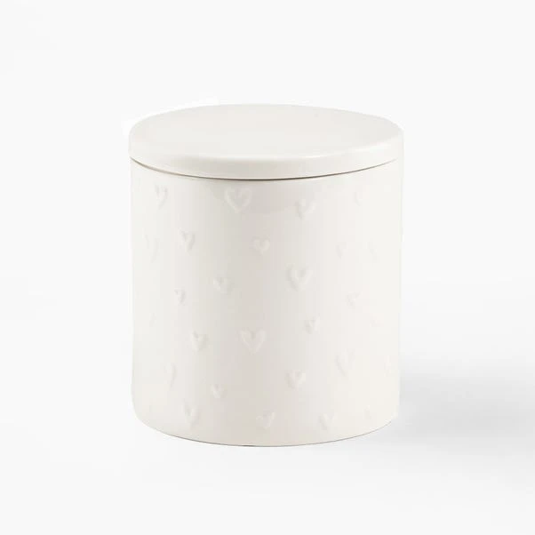 Add a touch of charm to your kitchen with the Heart Small Canister, featuring an embossed heart design that adds a sweet, decorative element to your storage. Crafted from high-quality materials, this canister combines practicality with a whimsical flair. The airtight seal keeps your contents fresh, while the embossed hearts offer a subtle yet delightful texture. Perfect for storing small essentials, it effortlessly complements any kitchen decor with its endearing details. Explore the Heart collection for matching pieces to complete your cosy, stylish look. For the best care, handwashing is recommended to preserve its lovely design.