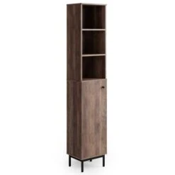 Colton Concrete Effect Tallboy Storage Unit With Mirrored Door