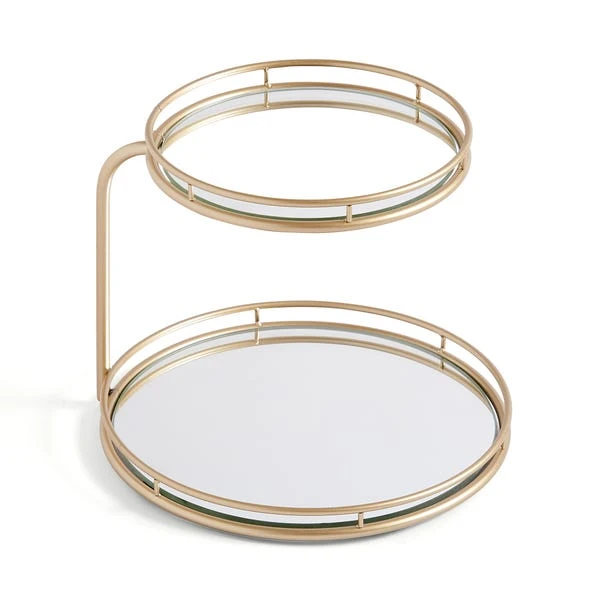 Display bathroom items in unparalleled style with this luxurious double tiered storage tray. Featuring a mirrored base, this piece is perfect for adding a striking statement in any home.