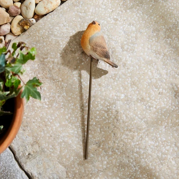 Featuring a cute robin design, this sturdy hand-painted garden stake is made from durable polyresin and requires little to no maintenance.
