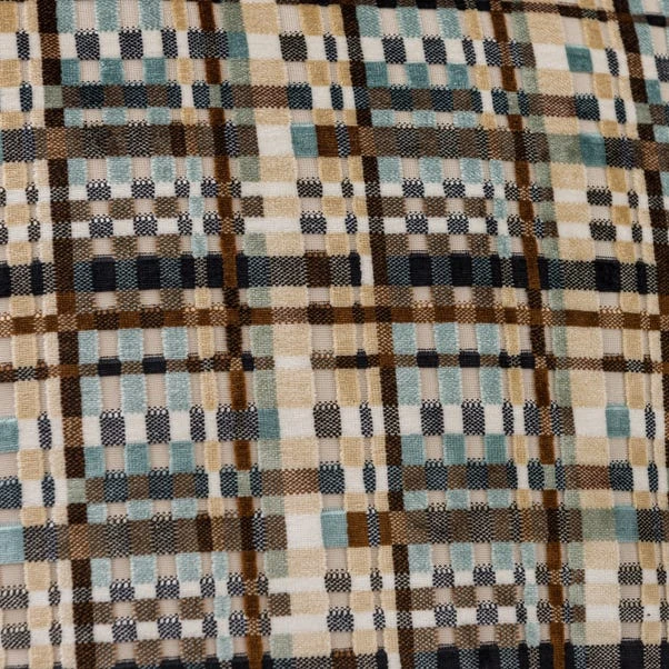 Add a geometric touch to your space with the Roxana cut velvet cushion. The luxurious pattern has a soft feel and is available in a choice of colours. Made from recycled polyester, the cushion has a feather inner for lasting fullness and there are matching curtains available in the range for a fully designed look in your room.
