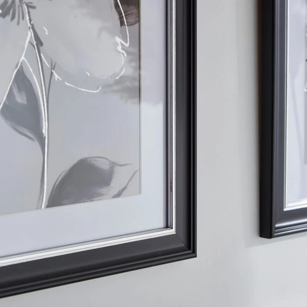 Indulge in the beauty of our Set of 2 Luxe Florals Framed Prints. These modern masterpieces showcase intricate, detailed prints of flowers, accentuated with shimmering silver foil details.