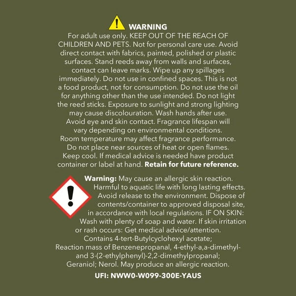 Fill your home with the fresh, inviting fragrance of green leaves, tuberose, jasmine, and honeysuckle, complemented by warm notes of amber, sandalwood, and vanilla. The beautiful green speckled glaze of this ceramic vessel adds a touch of natural charm to any room, while the natural reeds gently release the scent for up to 8 weeks. Each piece is unique due to the glazing process. Ideal for creating a calming, earthy atmosphere, this diffuser is as decorative as it is aromatic; perfect for your living room, bedroom, or office. A thoughtful way to enhance your home’s ambience with a refreshing, nature-inspired fragrance.